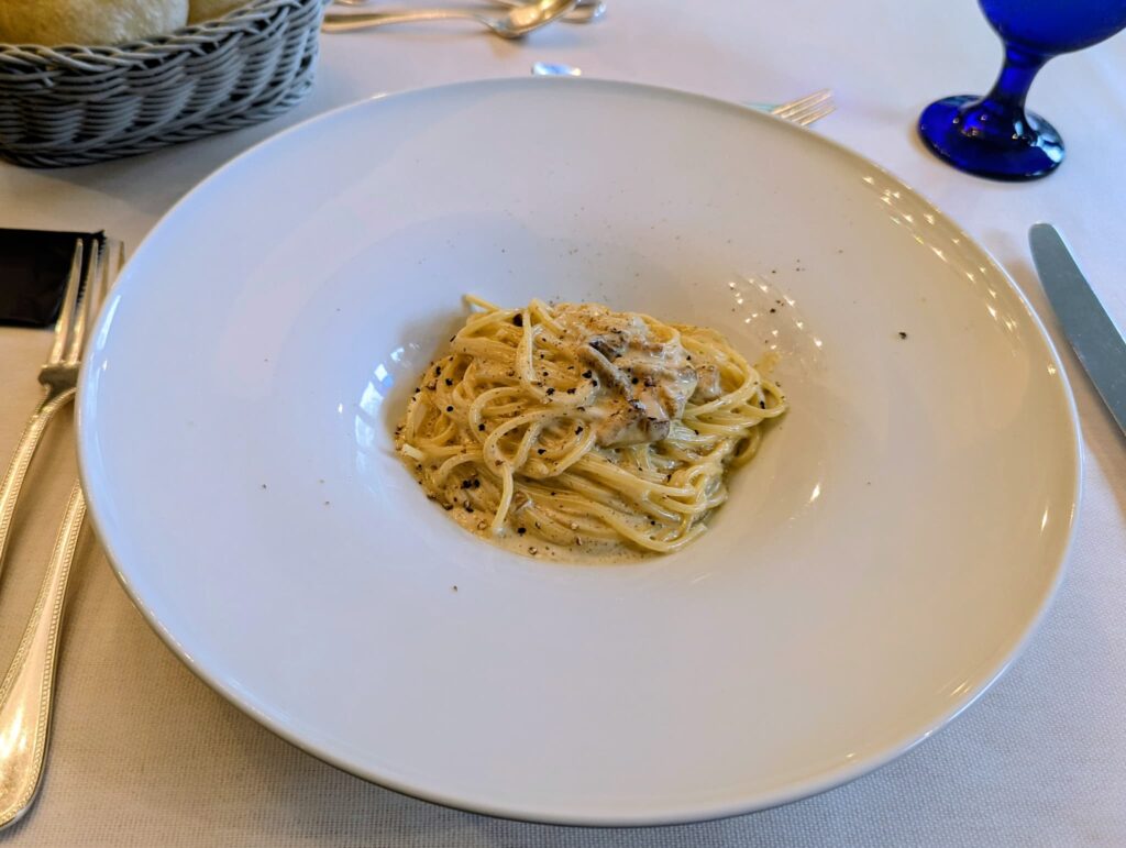 黒トリュフ風味のカルボナーラ スパゲッティーニ