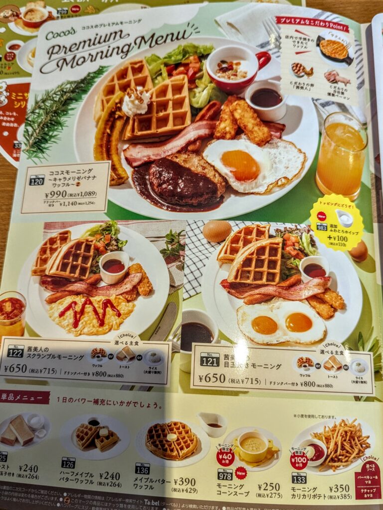 他のチェーン店だと、朝食は数種類に絞られていることが多いですが、ココスはまさに“プレミアム”。