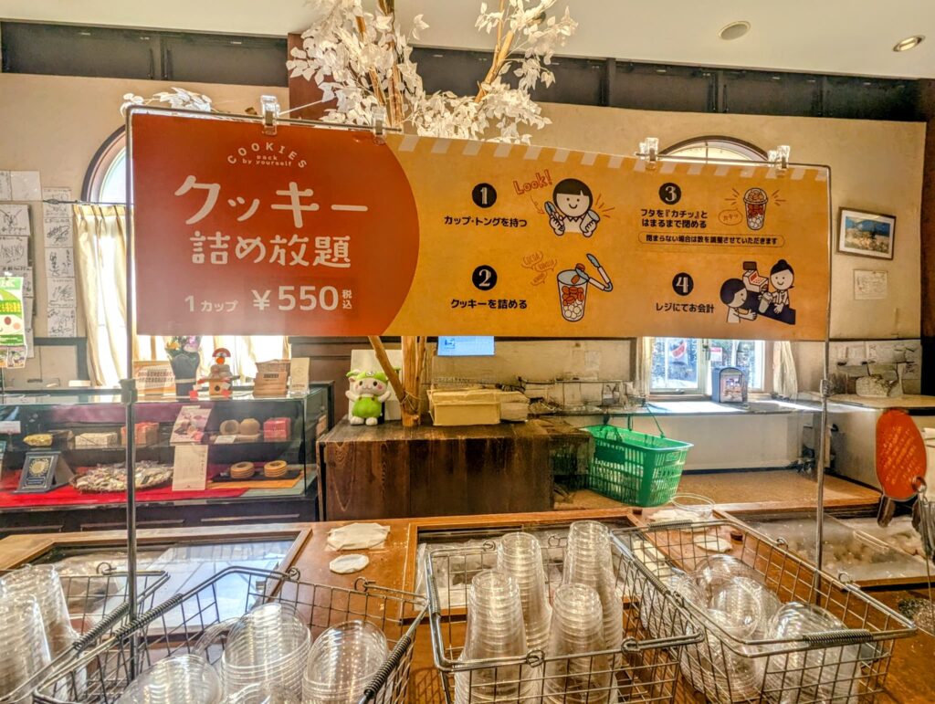 カップいっぱいにクッキーを詰めることができ、家族連れやカップルで挑戦している姿が多く見られました。