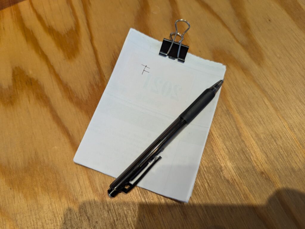 途中で回数が分からなくならないよう、紙とペンでチェックしながら進めます。