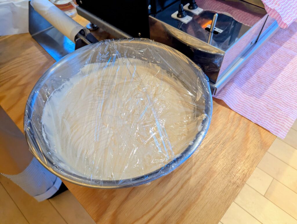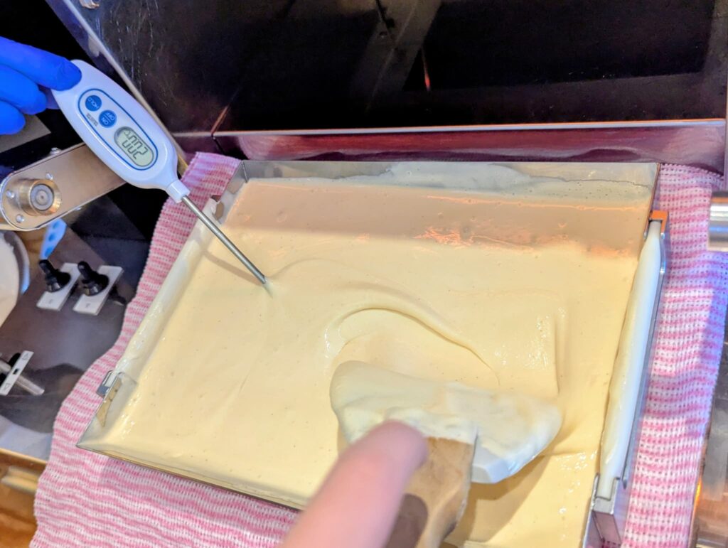 まずは生地を容器に入れ、20度になるまでヘラで混ぜる作業からスタート。