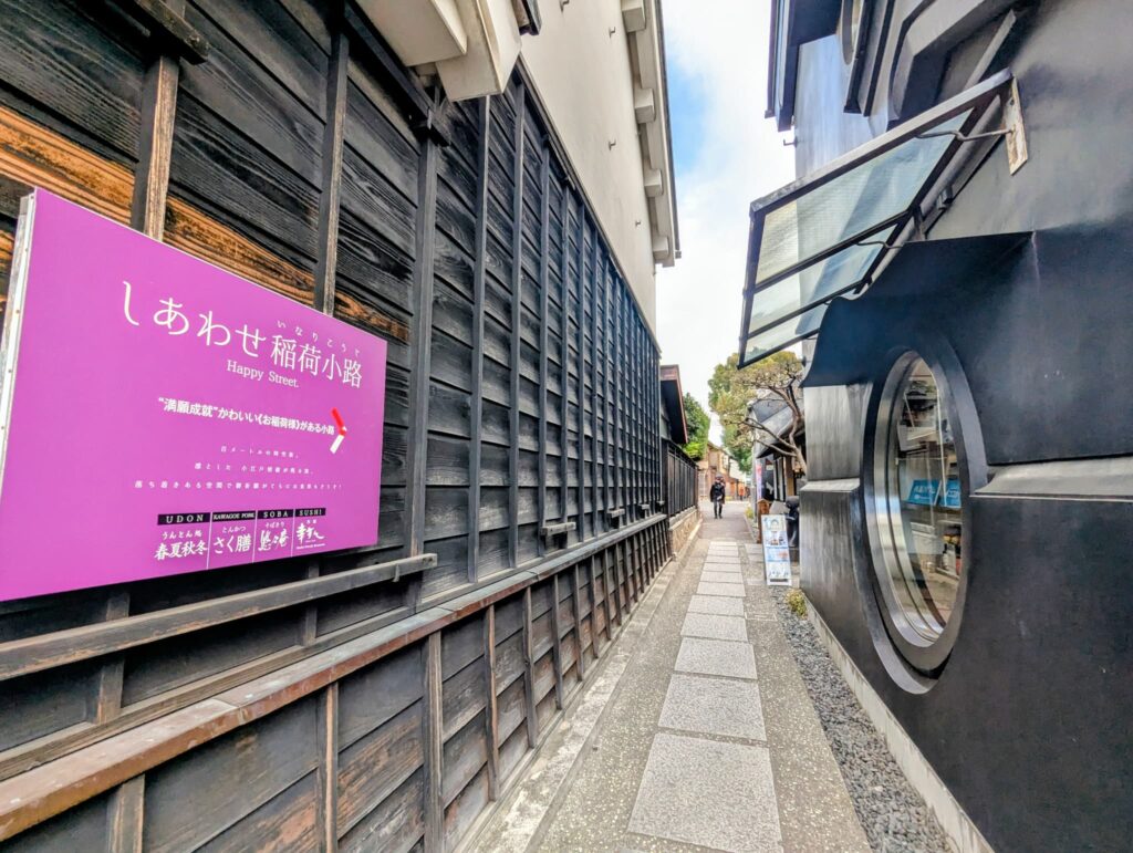 大通りの交差点にある看板を目印に小路へ入ると、少し進んだ先に川越バウムのお店があります。