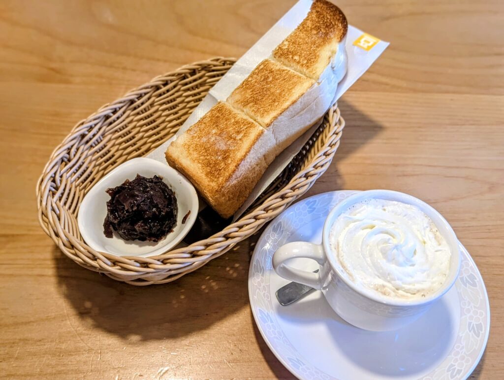 朝11時までに注文すれば、ドリンク代だけでトーストと卵やあんこなどのトッピングが付いてくるこのシステム。