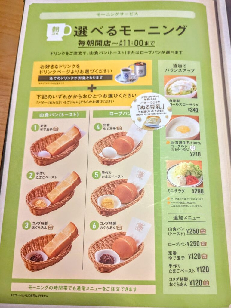 コメダ珈琲店のモーニングをまだ試したことがない方も、