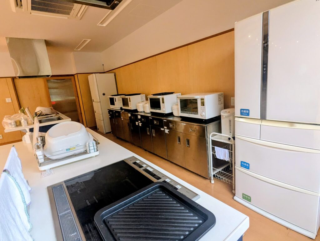共用キッチンには、冷蔵庫・電子レンジ・調理器具・食器などが一通り揃っているので、まるで自宅のように料理ができます。