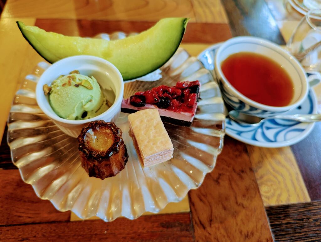 小さめサイズながらもそれぞれ丁寧に作られていて、ケーキはしっとり濃厚、アイスはなめらかで後味スッキリ。