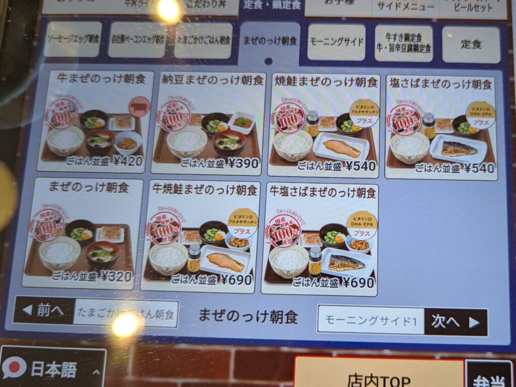 ファミレスのモーニングでは、メニュー数は多くても内容が似通っていることが多いですが、すき家は「和食の組み合わせ」でしっかり差別化されていると感じました。