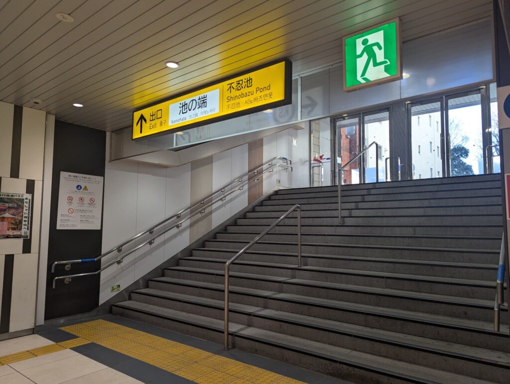 上野駅周辺は人混みが多い印象ですが、この出口を使うと混雑に流されにくく、初めてでも迷わず到着できました。