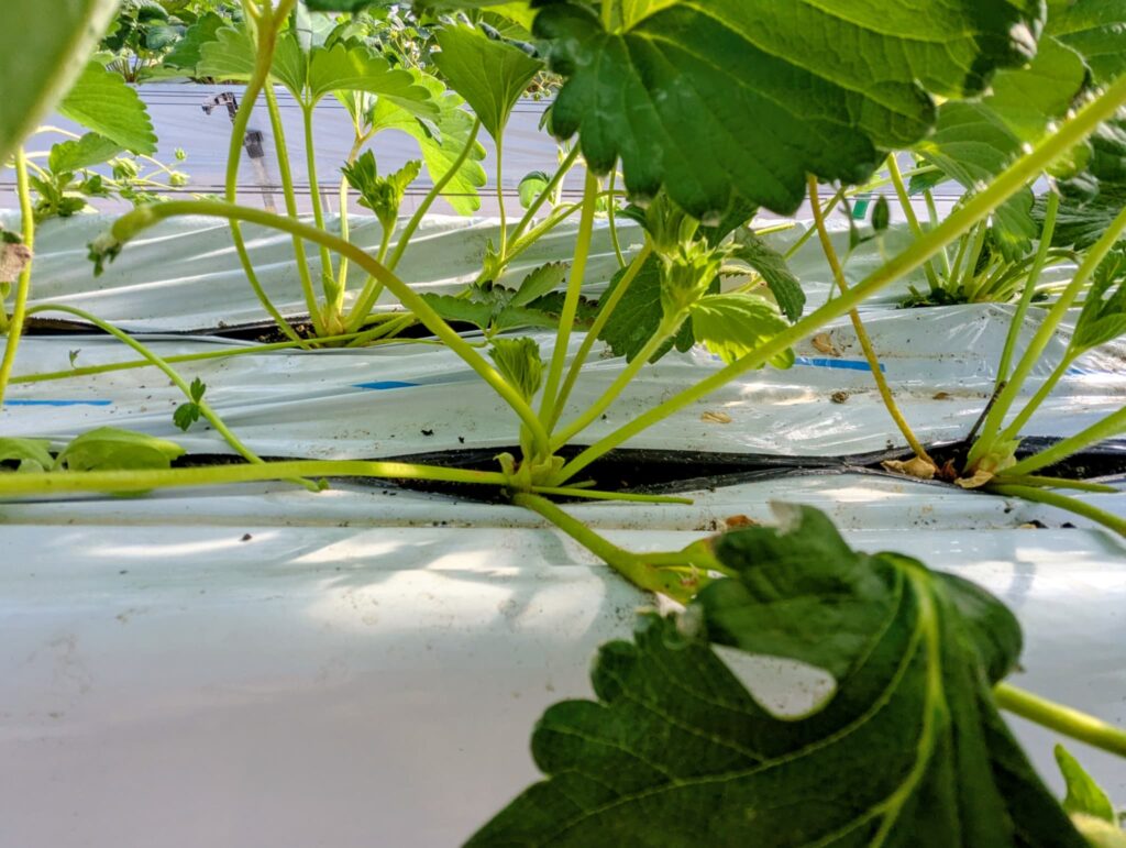 一つひとつの株を見ながら、不要な葉を取り除くことで、いちごが元気に育ちやすくなります。