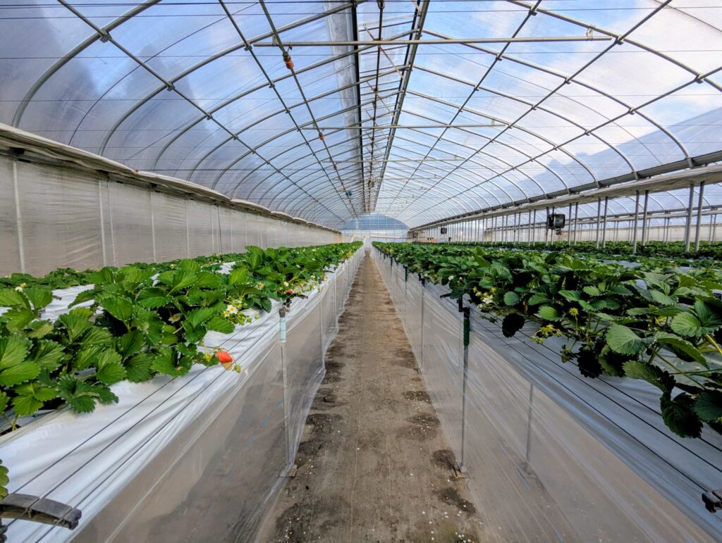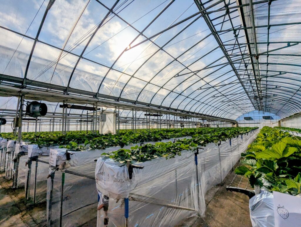 いちご狩りシーズンには多くの家族連れや観光客で賑わい、広々とした敷地と開放的な雰囲気が魅力。