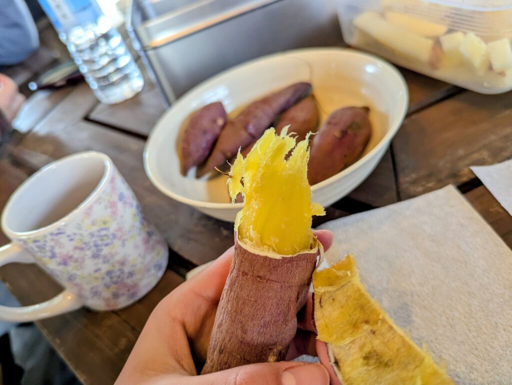 焼き芋は蜜がたっぷりで、まるでスイーツのような甘さ。