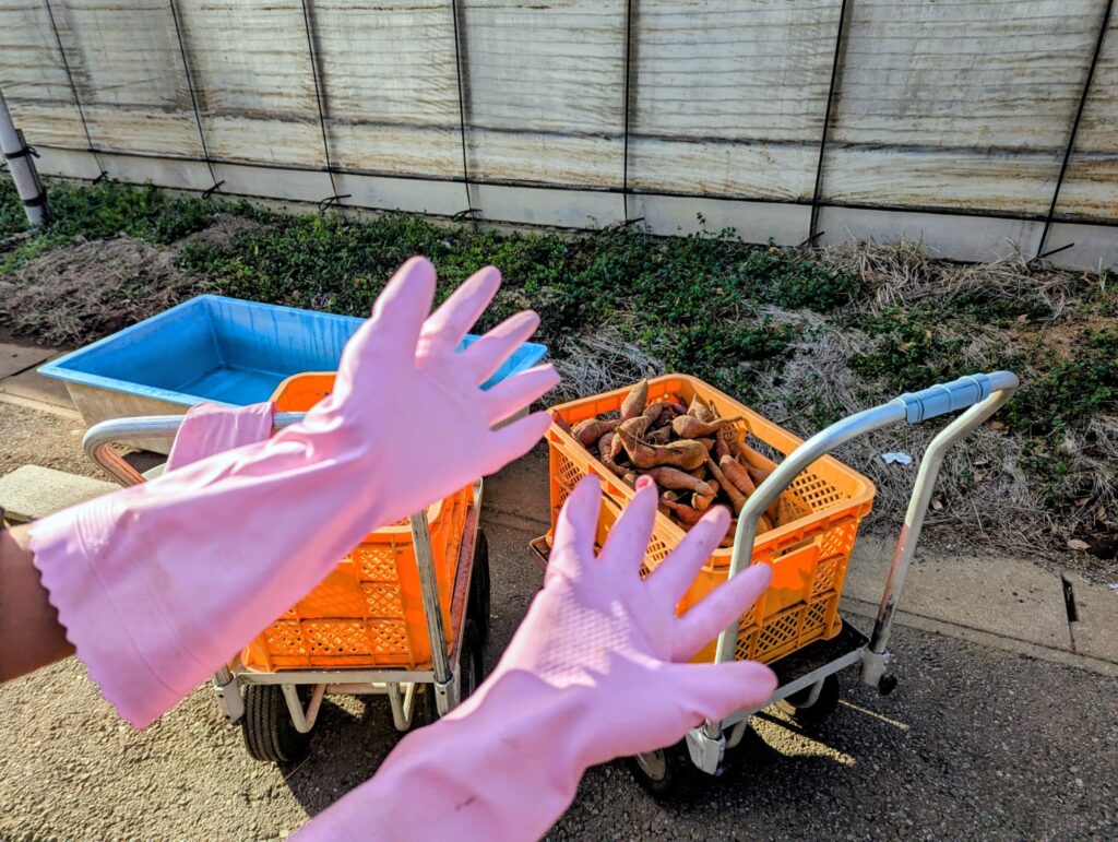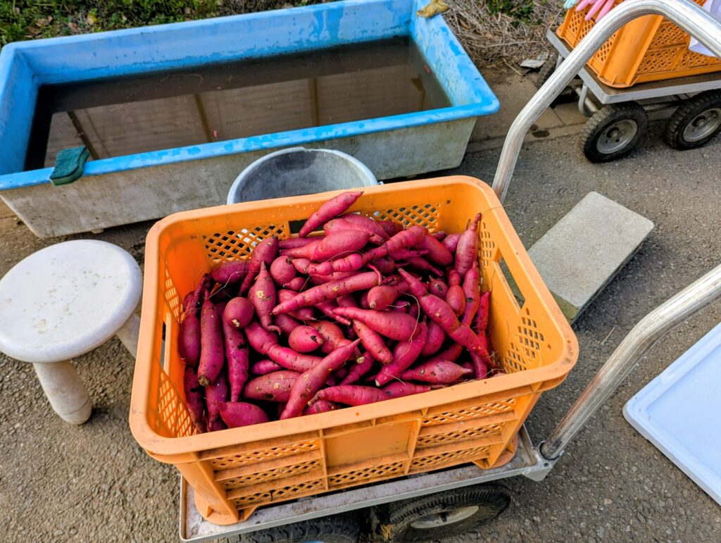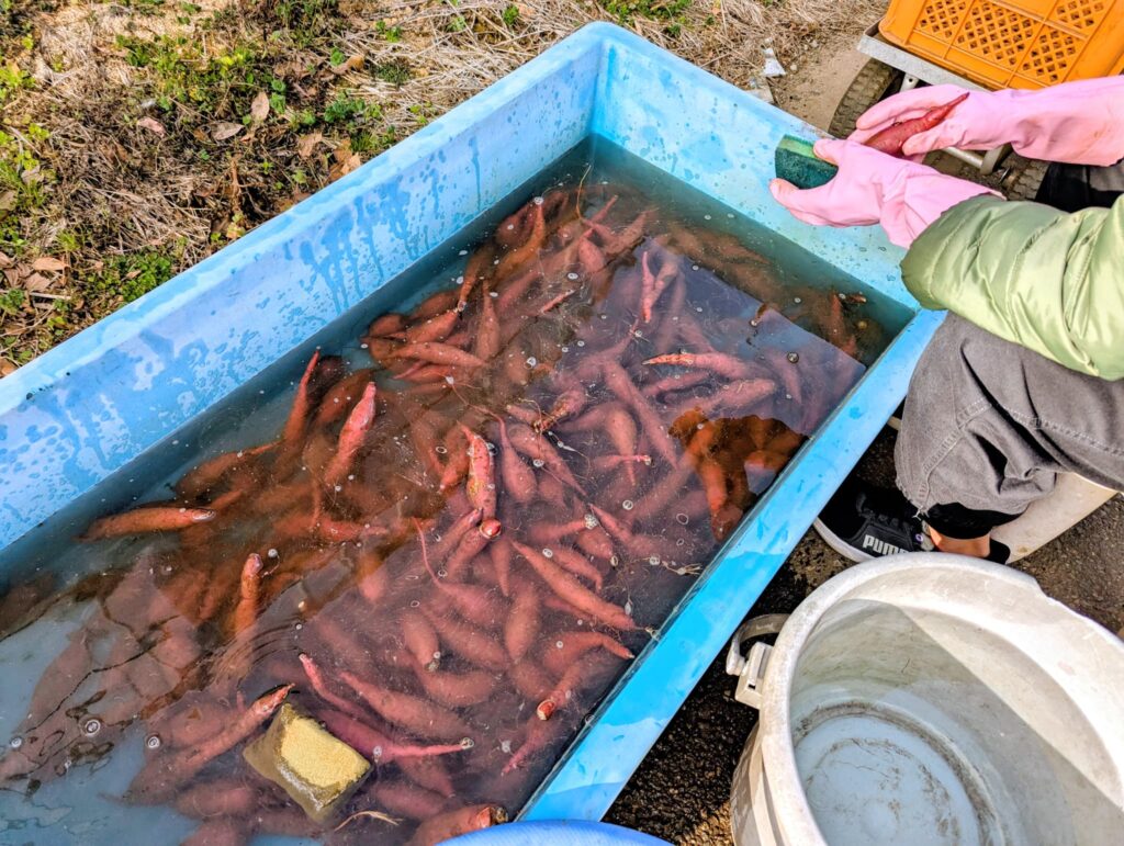 大量のお芋を水で洗っていく作業ですが、オーナーさんが丁寧にやり方を教えてくれます。
